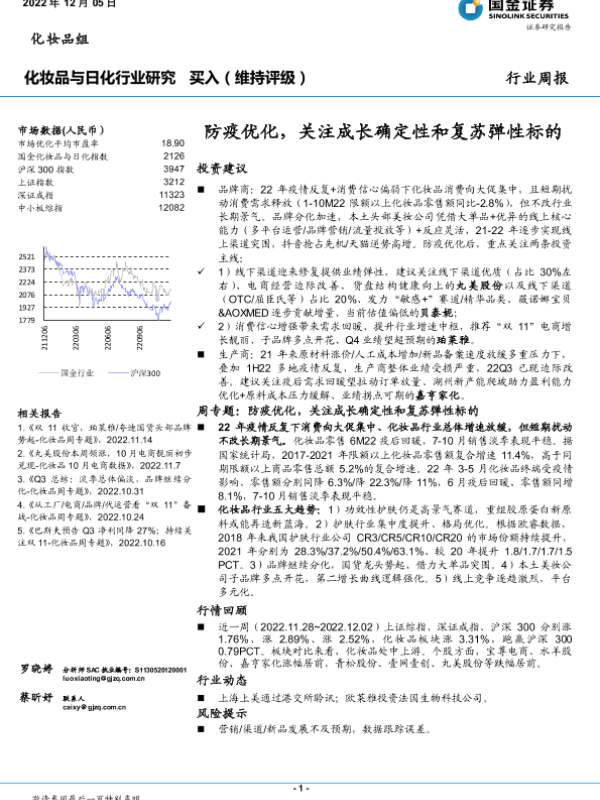 【国金证券】【20221205】20221205-国金证券-化妆品与日化行业研究:防疫优化,关注成长确定性和复苏弹性标的-17页 行业研究
