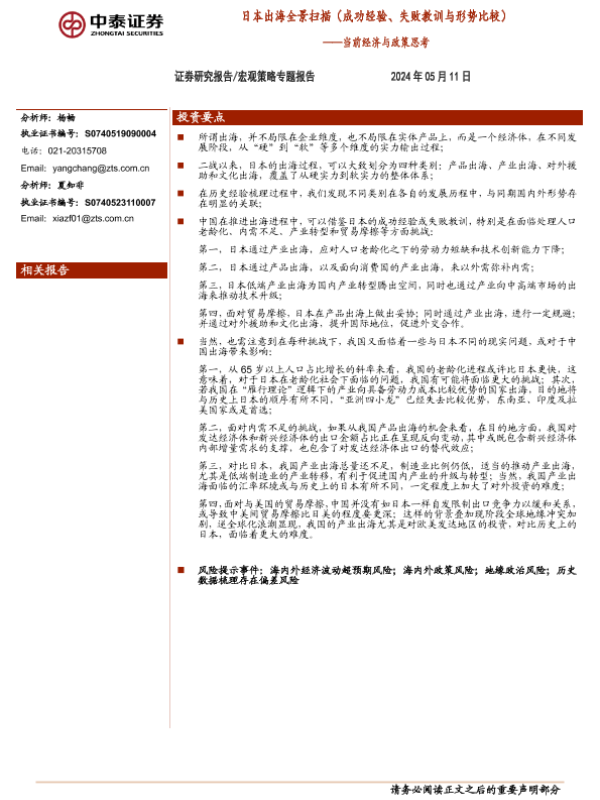 【中泰证券】【20240511】当前经济与政策思考:日本出海全景扫描(成功经验、失败教训与形势比较)-33页 行业研究