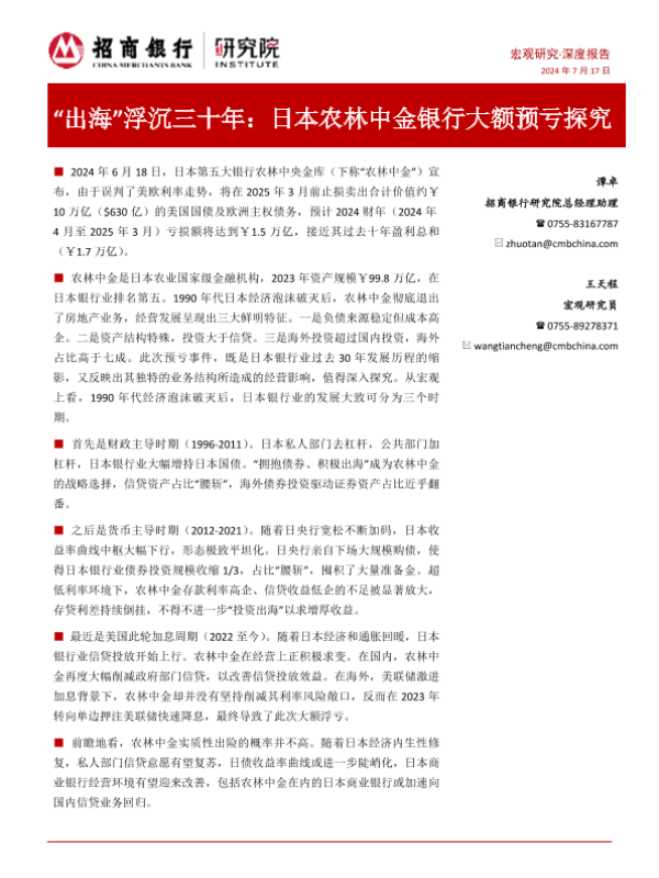 【招商银行】【20240717】“出海”浮沉三十年:日本农林中金银行大额预亏探究-15页 行业研究