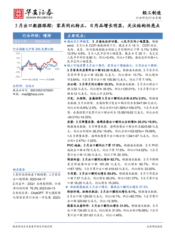 【华安证券】【20230422】20230422-华安证券-轻工制造行业专题:3月出口数据跟踪:家具同比转正,日用品增长明显,关注结构性亮点-16页 行业研究