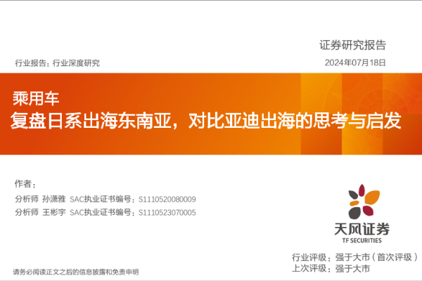 【天风证券】【20240718】乘用车行业深度研究:复盘日系出海东南亚,对比亚迪出海的思考与启发-54页 行业研究