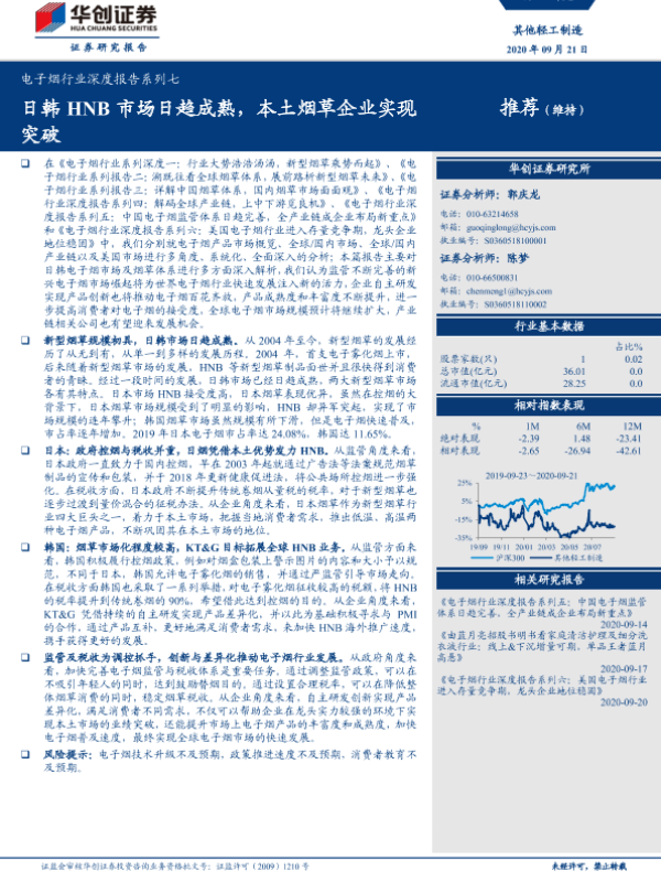 【华创证券】【20200921】电子烟行业深度报告系列七:日韩HNB市场日趋成熟,本土烟草企业实现突破-31页 行业研究