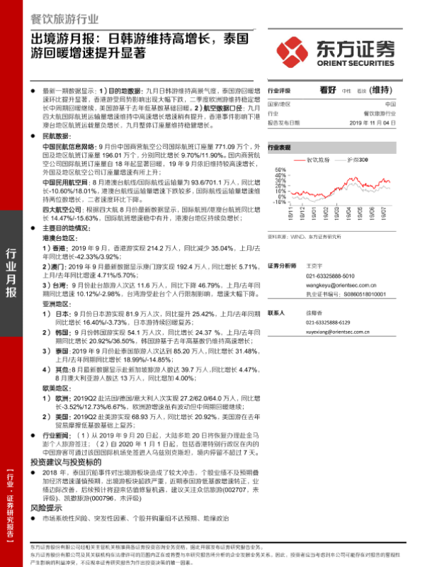 【东方证券】【20191104】餐饮旅游行业:出境游月报-20页 行业研究