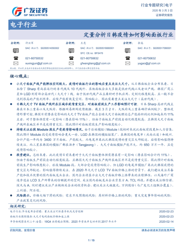 【广发证券】【20200303】电子行业:定量分析日韩疫情如何影响面板行业-14页 行业研究
