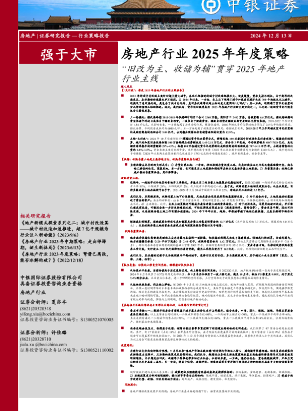 【中银证券】【20241213】房地产行业2025年年度策略:“旧改为主、收储为辅”贯穿2025年地产行业主线-62页 行业研究