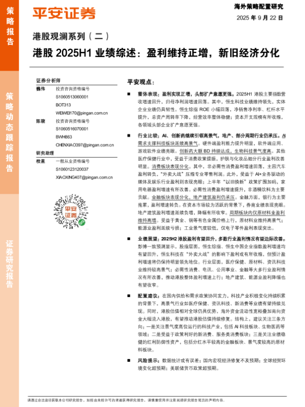 【平安证券】【202509】港股2025H1业绩综述:盈利维持正增,新旧经济分化-11页 证券期货研究报告