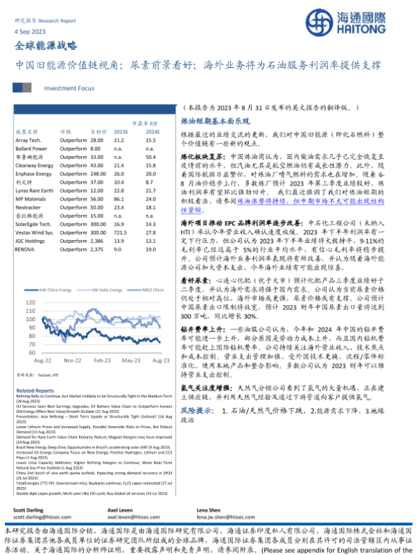 【海通国际】【20230904】全球能源行业战略中国旧能源价值链视角;尿素前景看好;海外业务将为石油服务利润率提供支撑-40页 行业研究