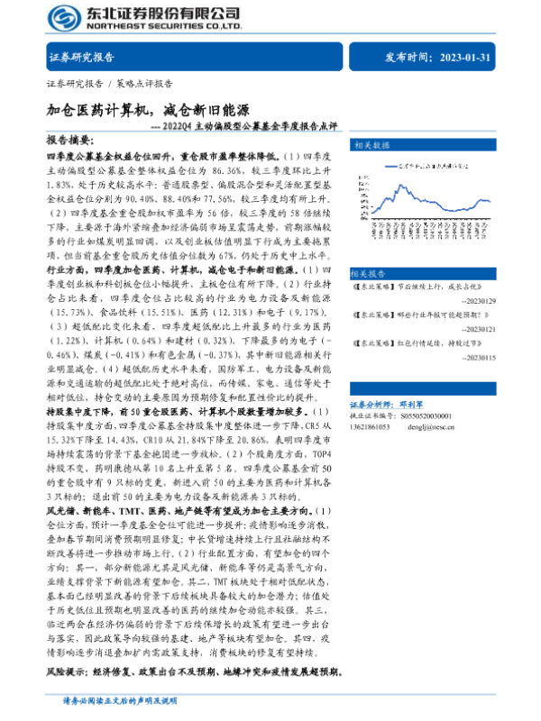 【东北证券】【20230131】2022Q4主动偏股型公募基金季度报告点评:加仓医药计算机,减仓新旧能源-15页 行业研究