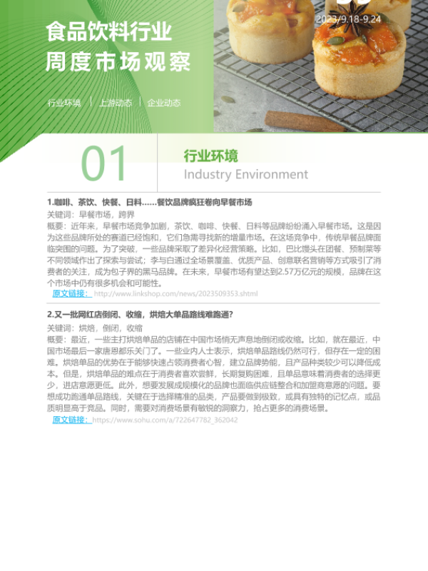 【艾瑞咨询】【20230924】2023年第39周:食品饮料行业周度市场观察-5页 行业研究