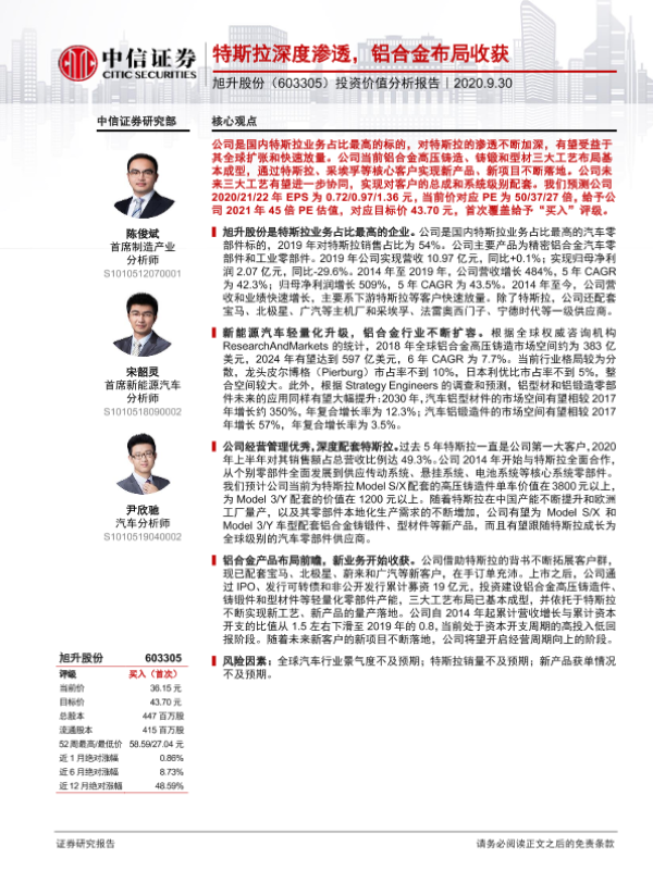 【中信证券】【20200930】20200930-中信证券-旭升股份-603305.SH-投资价值分析报告:特斯拉深度渗透,铝合金布局收获-21页 行业研究