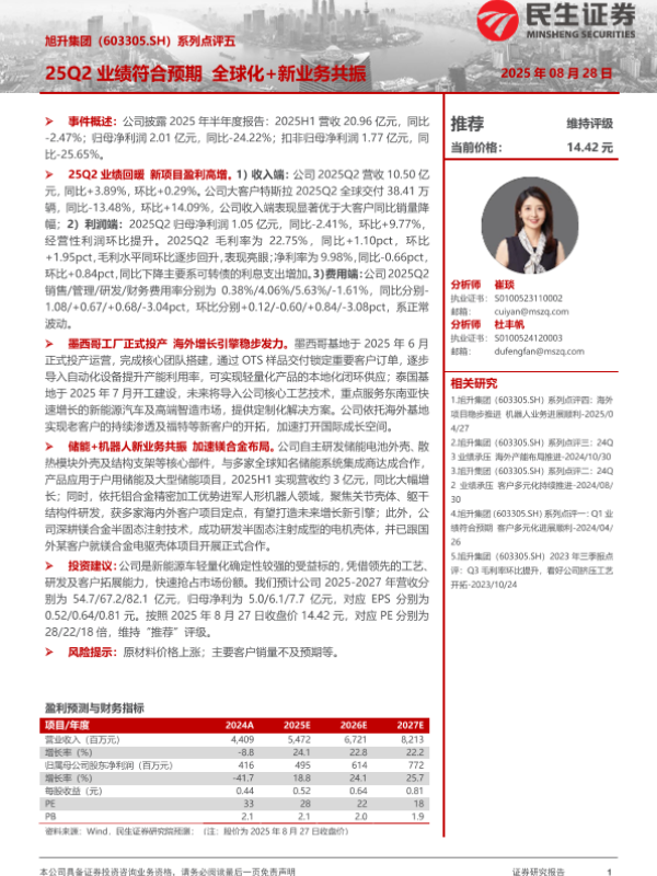 【民生证券】【20250828】旭升集团-25Q2业绩符合预期-全球化+新业务共振-3页 证券期货研究报告