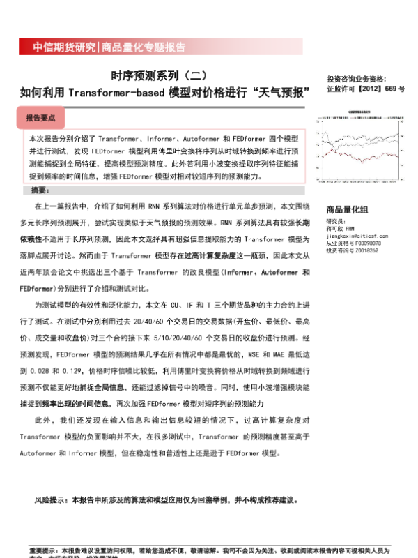 【中信期货】【20230411】商品量化专题报告:时序预测系列(二),如何利用Transformer_based模型对价格进行“天气预报”-31页 行业研究