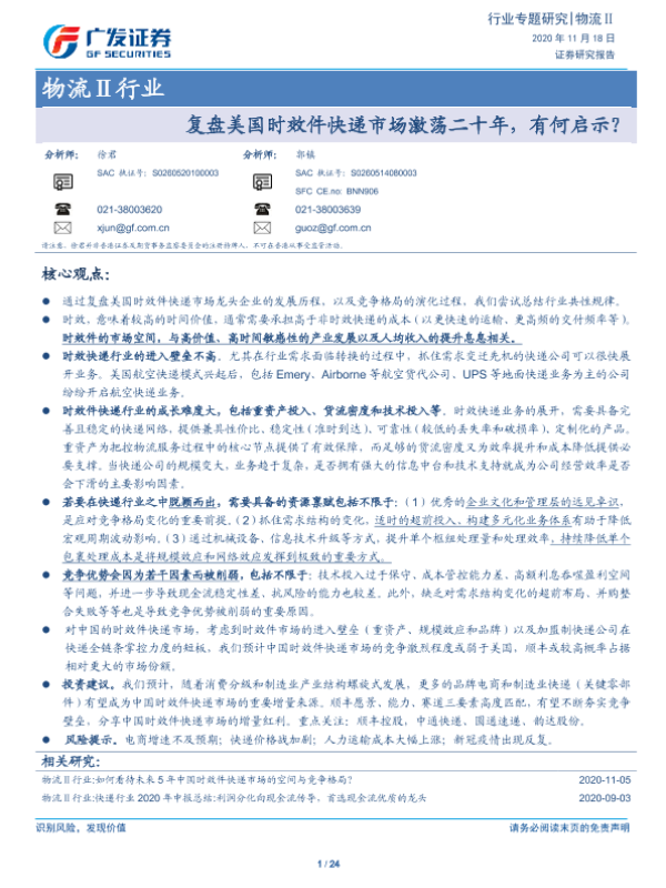 【广发证券】【20201118】复盘美国时效件快递市场激荡二十年,有何启示?-24页 行业研究