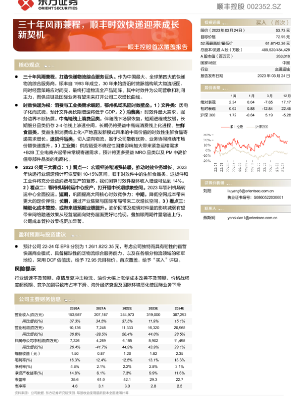 【东方证券】【20230324】顺丰控股首次覆盖报告:三十年风雨兼程,顺丰时效快递迎来成长新契机-49页 行业研究