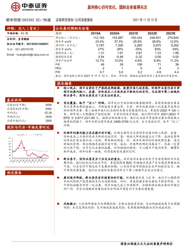 【中泰证券】【20211115】20211115-中泰证券-顺丰控股-002352.SZ-盈利核心仍可优化,国际业务值得关注-32页 行业研究