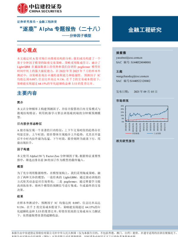 【中信建投证券】【202509】“逐鹿”Alpha专题报告(二十八)——分钟因子模型-20页 证券期货研究报告