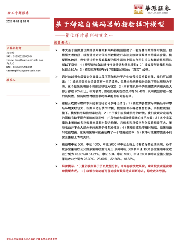 【华源证券】【202602】基于稀疏自编码器的指数择时模型——量化择时系列研究之一-18页 证券期货研究报告