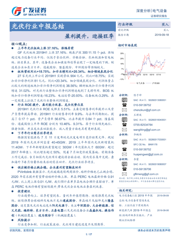 【广发证券】【20190918】光伏行业中报总结:盈利提升,迎接旺季-17页 行业研究