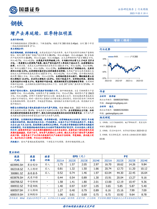 【国盛证券】【20230319】20230319-国盛证券-钢铁行业周报:增产去库延续,旺季特征明显-16页 行业研究