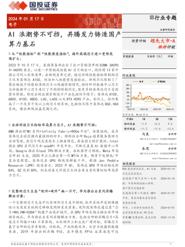 【国投证券】【20240118】AI浪潮势不可挡-昇腾发力铸造国产算力基石-38页 证券期货研究报告
