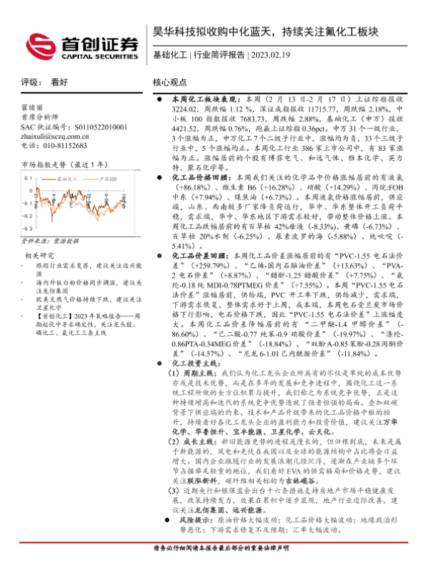 【首创证券】【20230219】20230219-首创证券-基础化工行业简评报告:昊华科技拟收购中化蓝天,持续关注氟化工板块-17页 行业研究