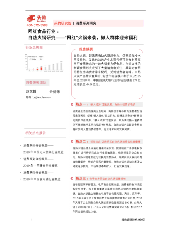 【头豹研究院】【20201027】网红食品行业:自热火锅研究——“网红”火锅来袭,懒人群体迎来福利-32页 行业研究