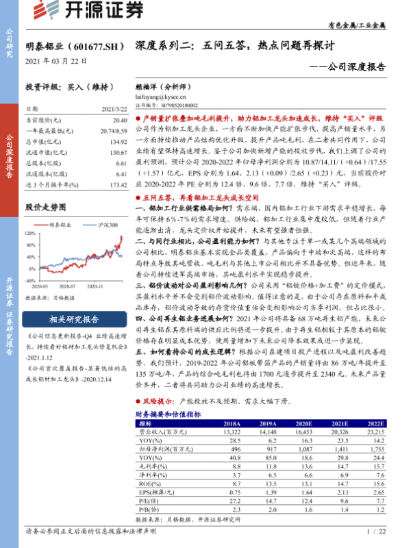 【开源证券】【20210322】明泰铝业-601677.SH-深度系列二:五问五答,热点问题再探讨-22页 公司研究