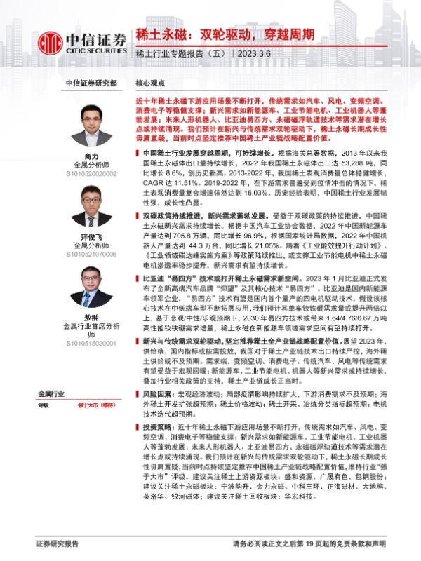 【中信证券】【20230306】稀土行业专题报告(五):稀土永磁,双轮驱动,穿越周期-20页 行业研究