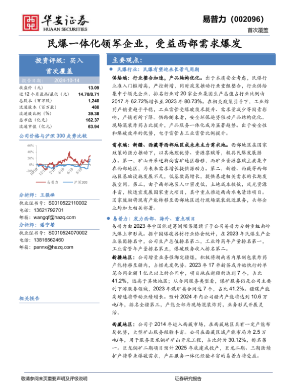 【华安证券】【20241014】民爆一体化领军企业,受益西部需求爆发-29页 行业研究