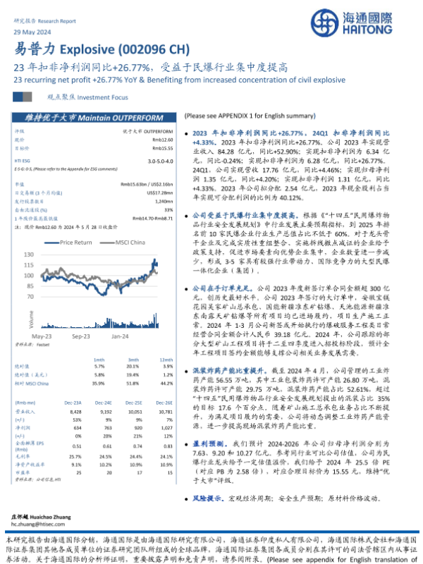 【海通国际】【20240529】易普力23年扣非净利润同比+26.77%,受益于民爆行业集中度提高-12页 公司研究