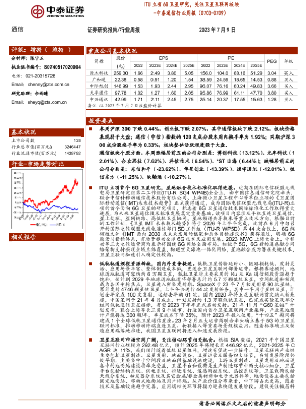 【中泰证券】【20230709】ITU立项6G卫星研究,关注卫星互联网板块-19页 行业研究