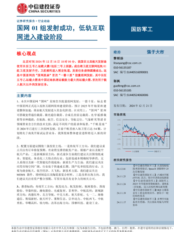 【中信建投证券】【20241221】国防军工行业:国网01组发射成功,低轨互联网进入建设阶段-24页 行业研究