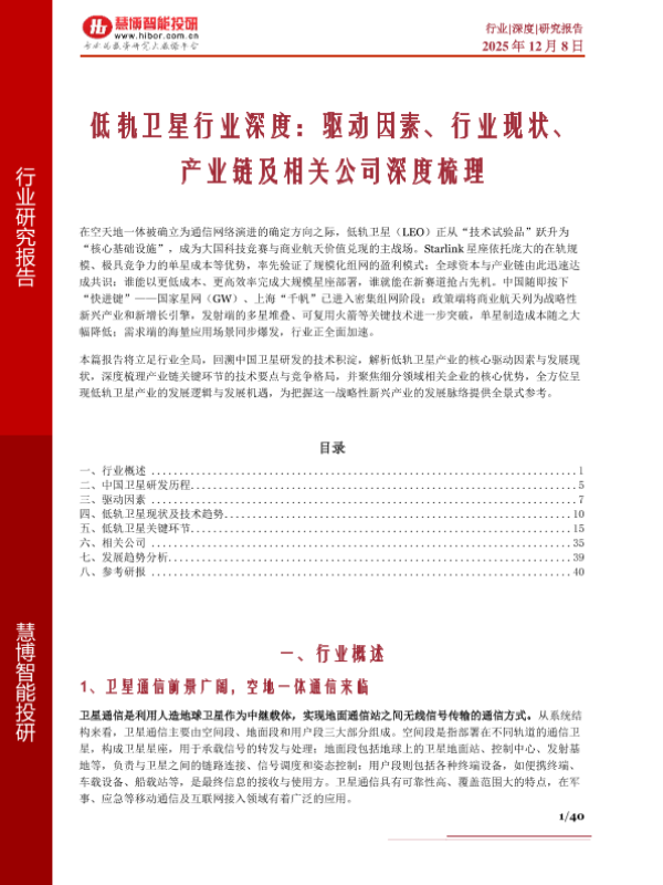 【慧博智慧博】【2024】低轨卫星行业深度:驱动因素、行业现状、产业链及相关公司深度梳理-40页 行业研究