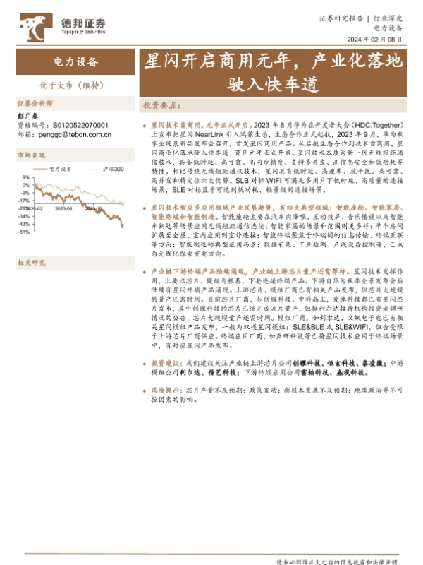 【德邦证券】【20240208】电力设备行业深度-星闪开启商用元年-产业化落地驶入快车道-20页 行业研究