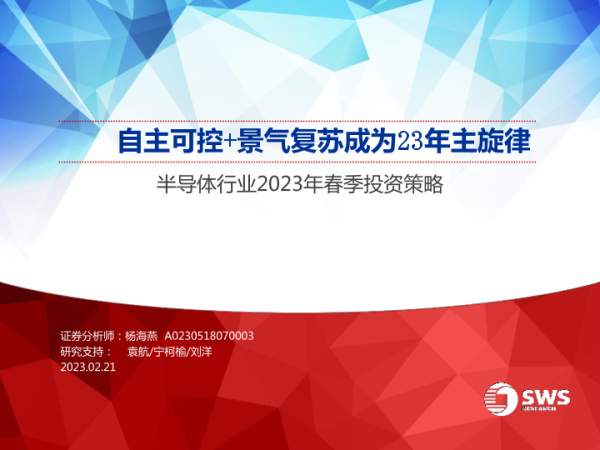 【申万宏源】【20230221】半导体行业2023年春季投资策略:自主可控+景气复苏成为23年主旋律-29页 行业研究