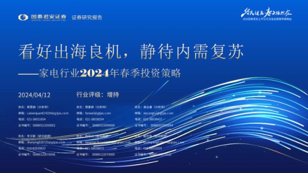 【国泰君安证券】【20240412】家电行业2024年春季投资策略:看好出海良机,静待内需复苏-39页 行业研究