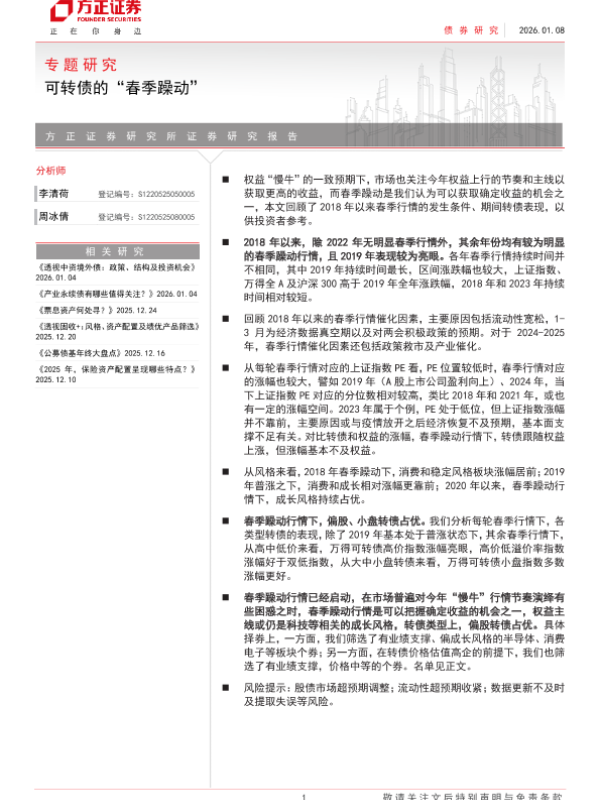 【方正证券】【202601】可转债的“春季躁动”-12页 证券期货研究报告