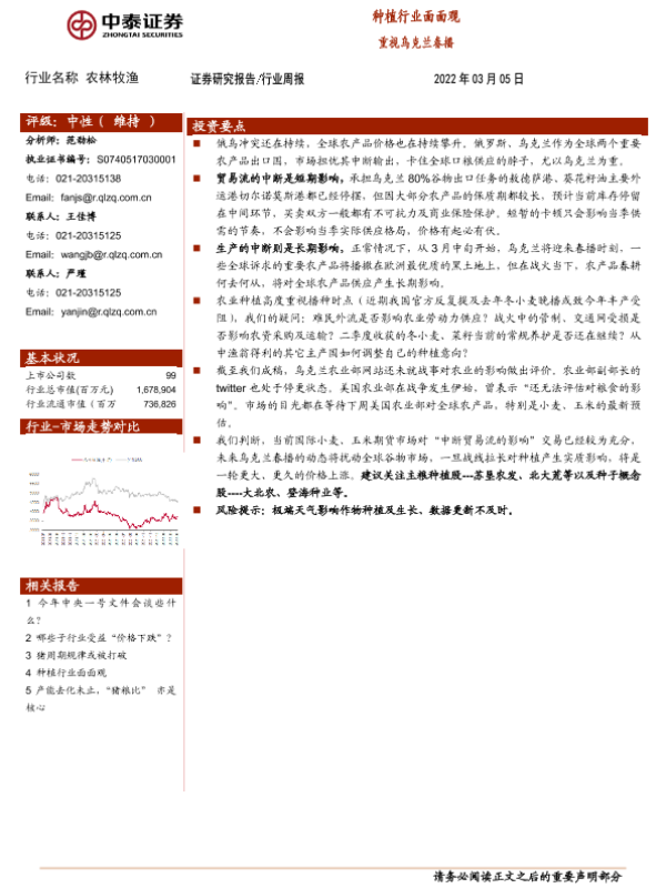 【中泰证券】【20220305】20220305-中泰证券-农林牧渔行业周报:种植行业面面观 重视乌克兰春播-8页 行业研究
