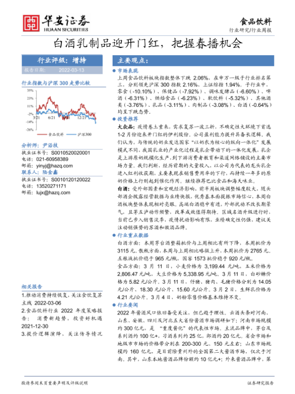 【华安证券】【20220313】20220313-华安证券-食品饮料行业周报:白酒乳制品迎开门红,把握春播机会-23页 行业研究