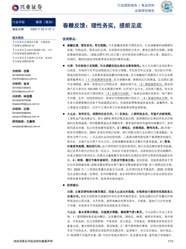 【兴业证券】【20250327】食品饮料:春糖反馈:理性务实,提前见底-13页 行业研究
