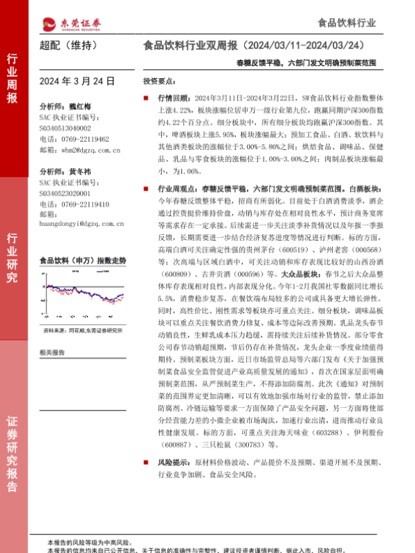 【东莞证券】【20240324】20240324-东莞证券-食品饮料行业双周报:春糖反馈平稳,六部门发文明确预制菜范围-13页 行业研究