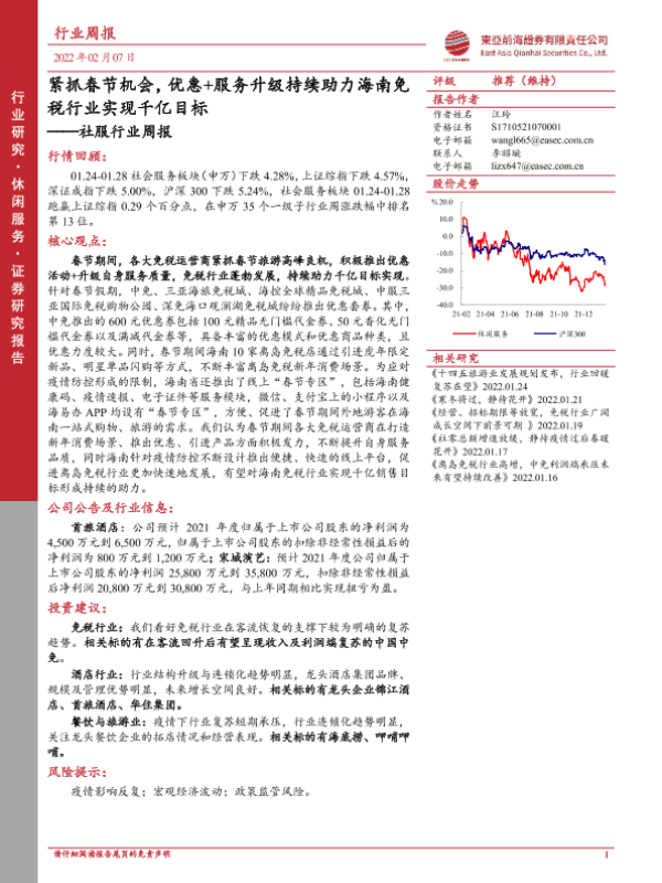 【东亚前海证券】【20220207】紧抓春节机会,优惠+服务升级持续助力海南免税行业实现千亿目标-17页 行业研究