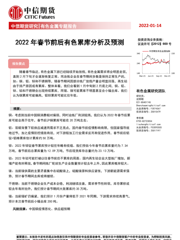 【中信期货】【20220114】有色金属专题报告:2022年春节前后有色累库分析及预测-19页 行业研究