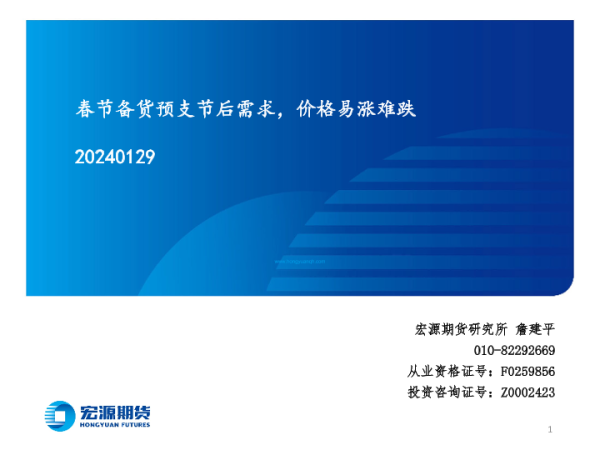 【宏源期货】【20240129】春节备货预支节后需求,价格易涨难跌-32页 行业研究