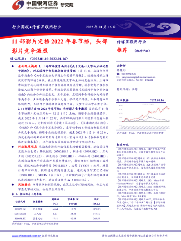 【银河证券】【20220116】11部影片定档2022年春节档,头部影片竞争激烈-47页 行业研究