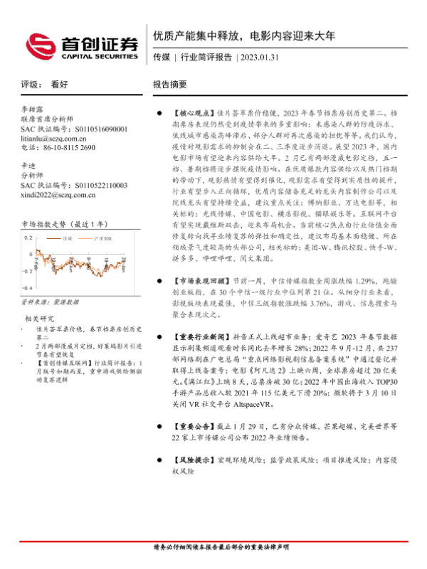 【首创证券】【20230131】优质产能集中释放,电影内容迎来大年-11页 行业研究