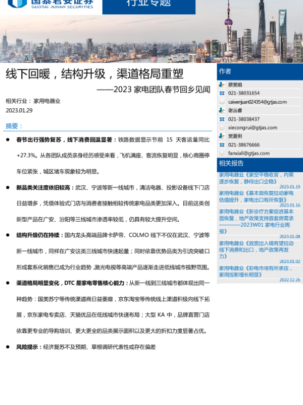 【国泰君安证券】【20230129】2023家电团队春节回乡见闻:线下回暖,结构升级,渠道格局重塑-30页 行业研究