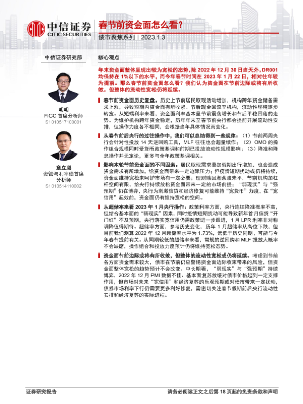 【中信证券】【20230103】债市聚焦系列:春节前资金面怎么看?-20页 行业研究