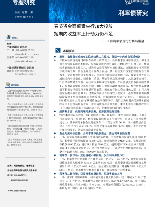 【中诚信国际】【202302】春节资金面偏紧央行加大投放,短期内收益率上行动力仍不足-11页 行业研究