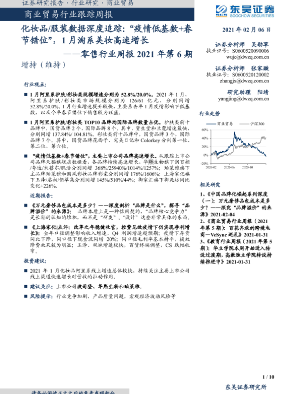 【东吴证券】【20210206】零售行业周报2021年第6期:化妆品 服装数据深度追踪-10页 行业研究